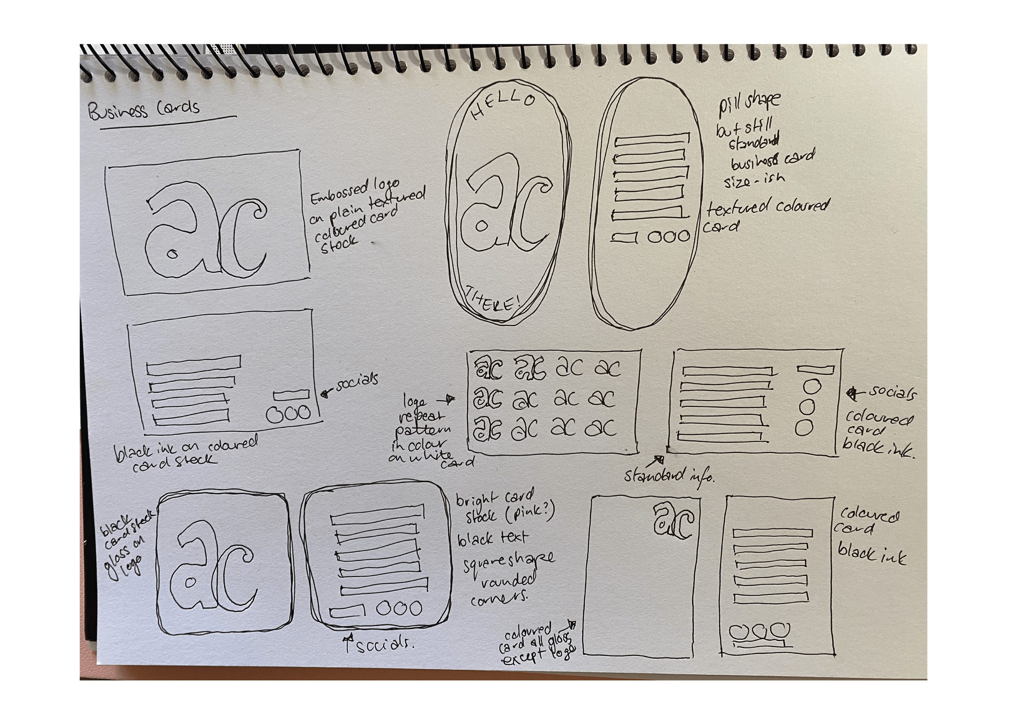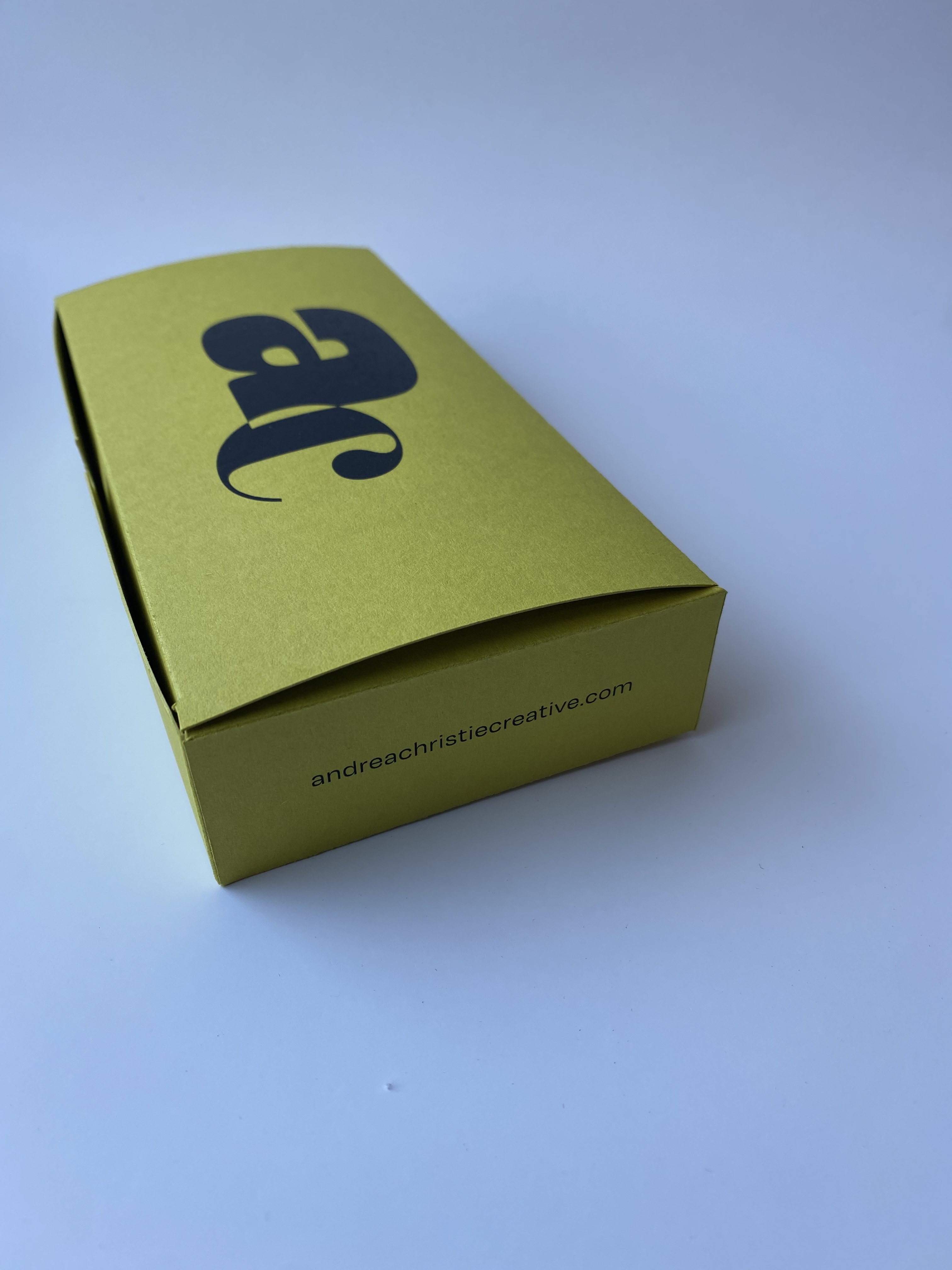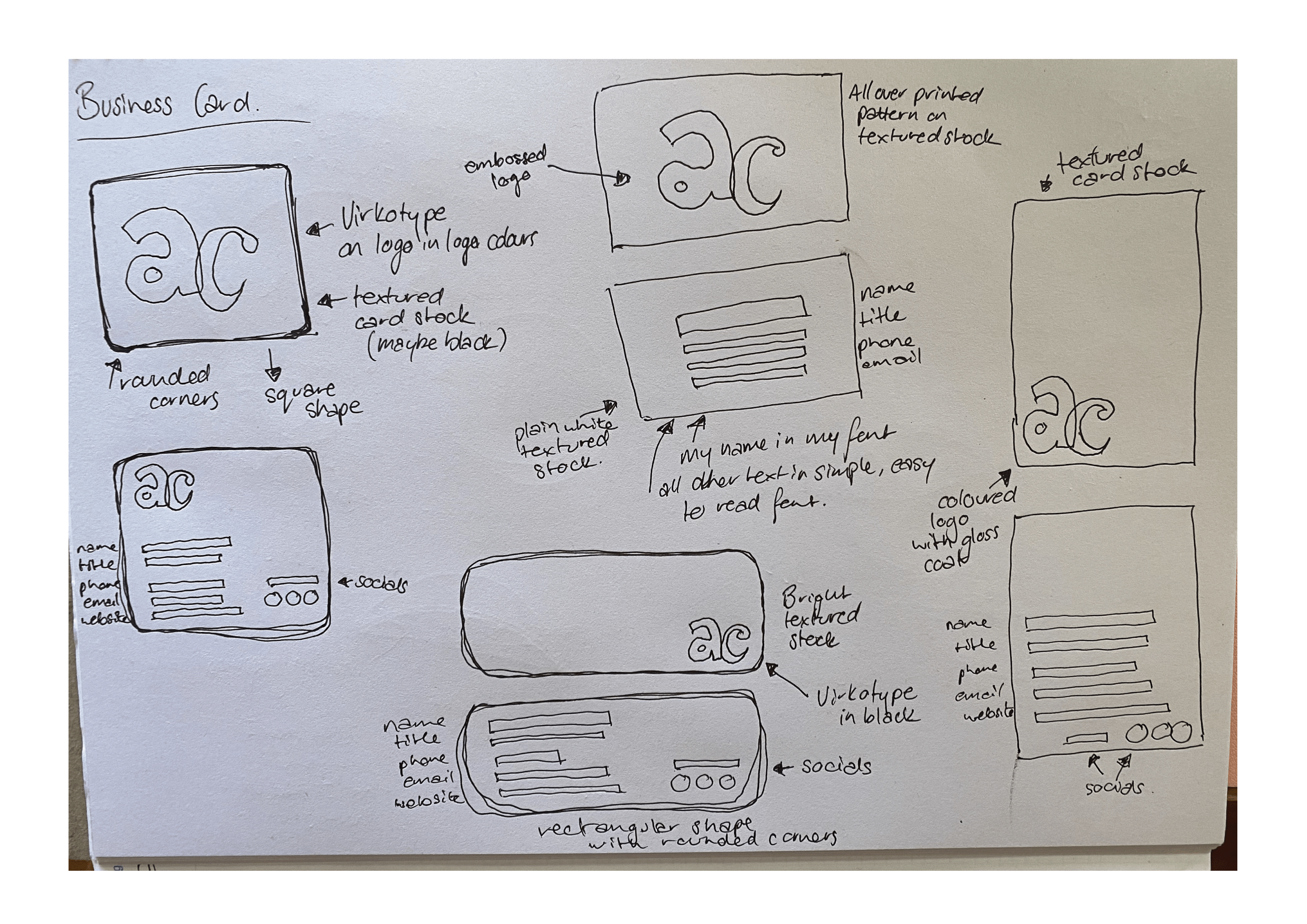 When working on my business card, I wanted to keep it simple. Letting my bold logo stand on its own and using a beautiful coloured card to be the main attraction. I did quite a few iterations, trying to work out the perfect business card layout that expressed me in a simple way.